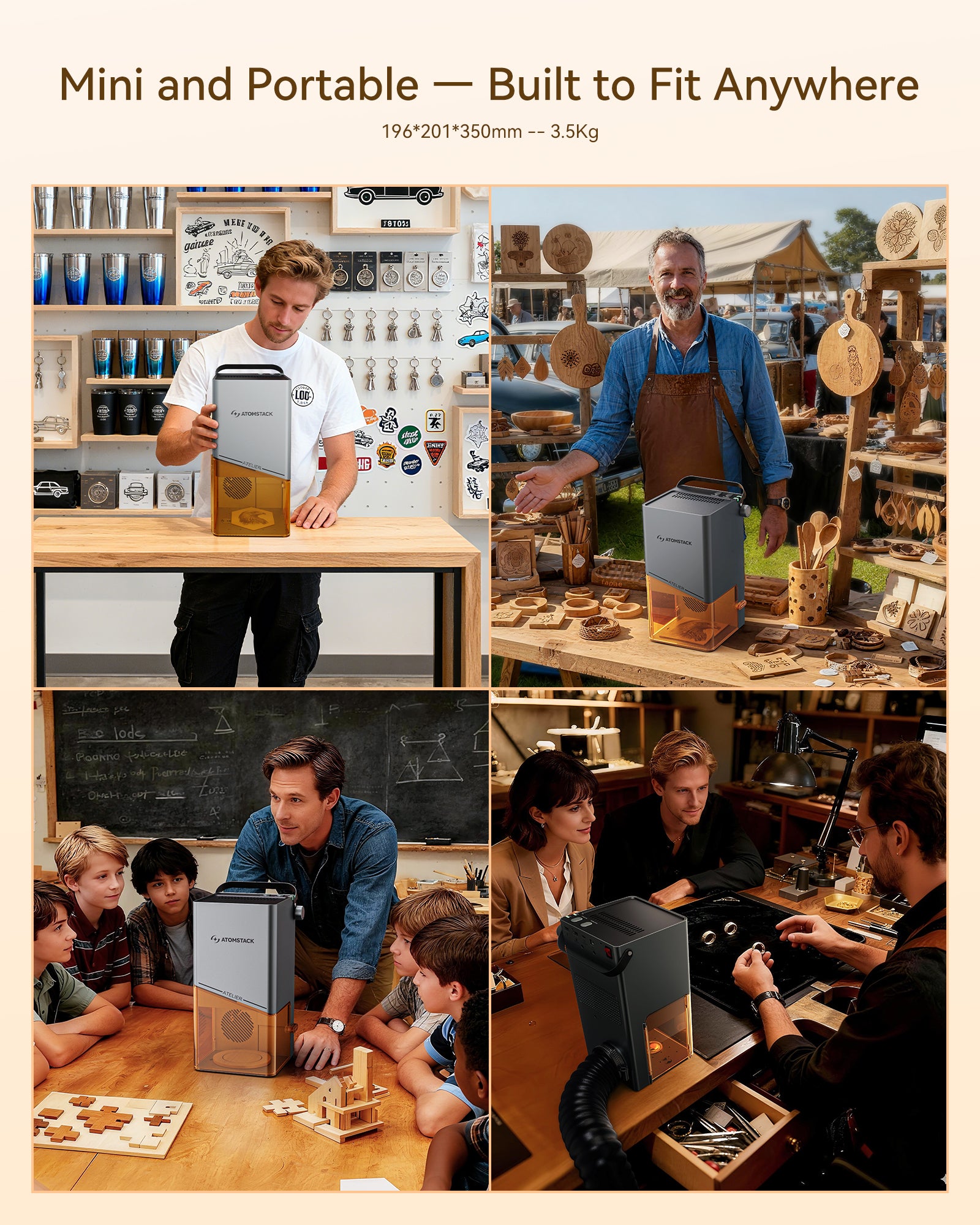 6. Power Anywhere with a Portable Power Bank: Run Atelier with a portable power bank for true on-the-go engraving. Just connect, open the mobile app, and start creating — no outlet required. Perfect for use at home, in workshops, at retail spaces, or during events.