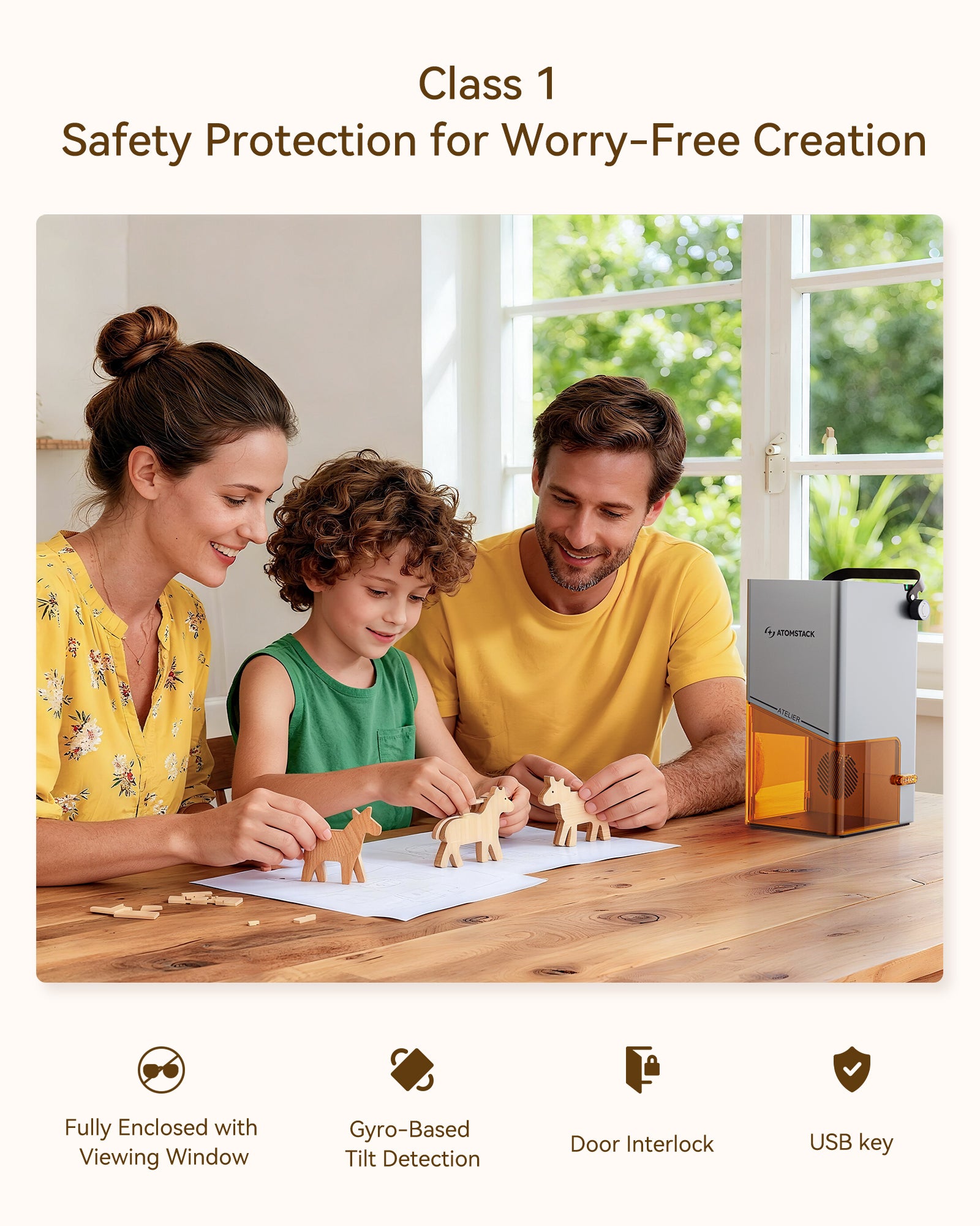 3. Certified Class 1 Laser Safety: Atelier L1 stands as the only Class 1 certified blue laser engraving system (IEC 60825-1) on the market, delivering technical-grade safeguarding to empower your free creations with uncompromised safety.