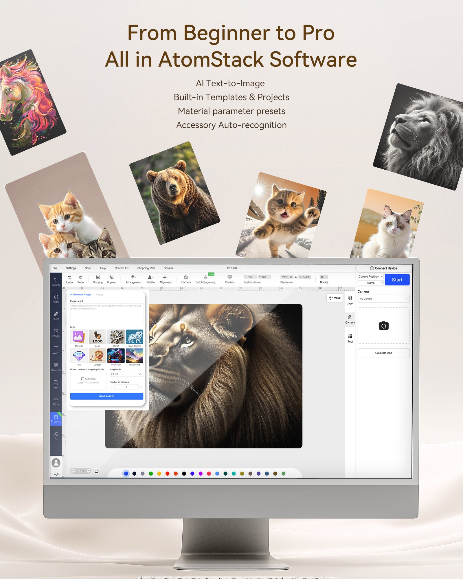 7. AtomStack Studio-Smart & Simple Control: From setup to engraving, it only takes three steps: open, select, confirm. Designed to make laser creation effortless, perfect for beginners and powerful enough for everyday projects.