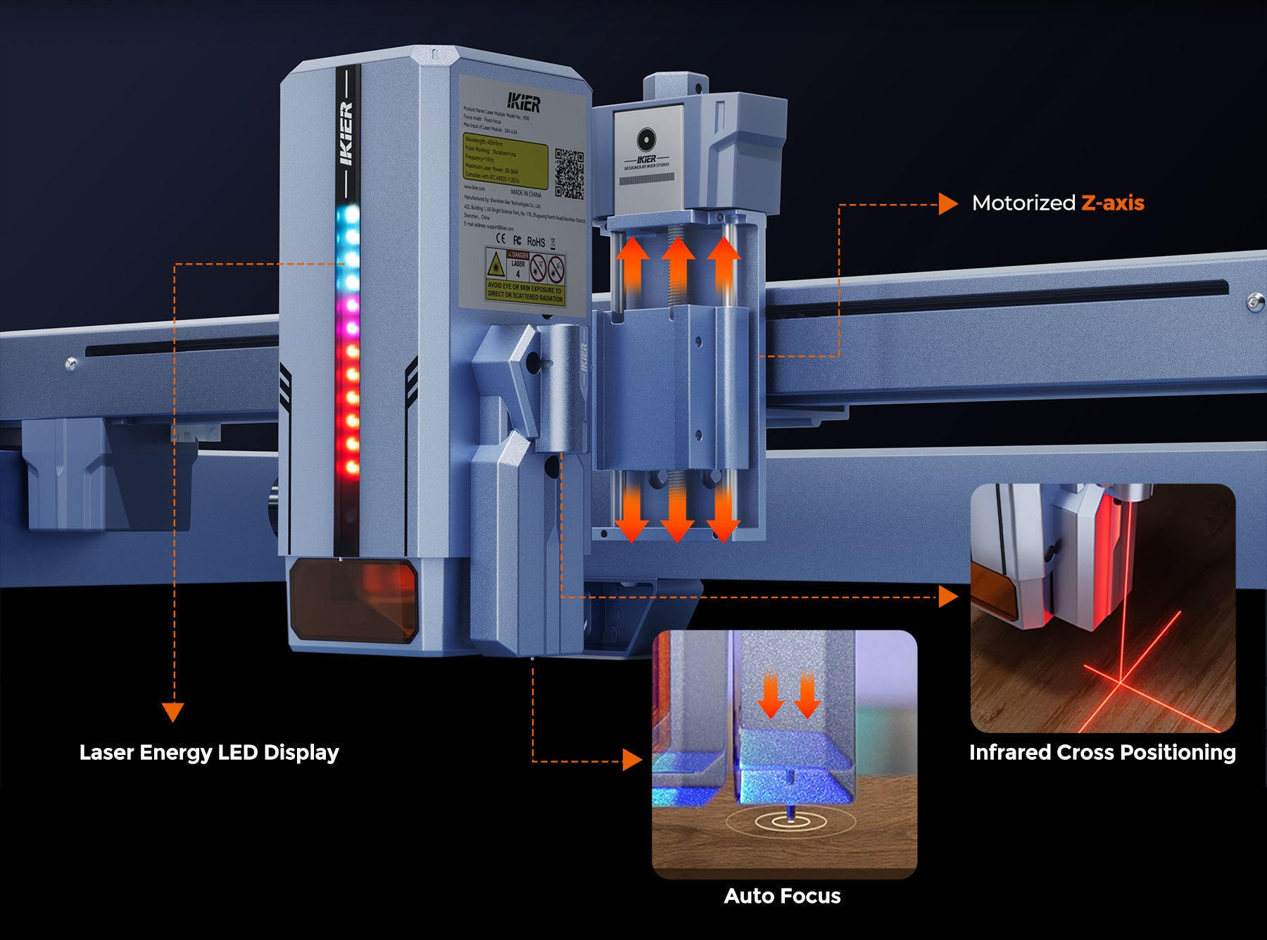 Motorized Z-axis: The days of manual focusing are over. IKIER’s intelligent Z-axis helps you achieve autofocus by automatically measuring the distance to the object and automatically adjusting the focus.