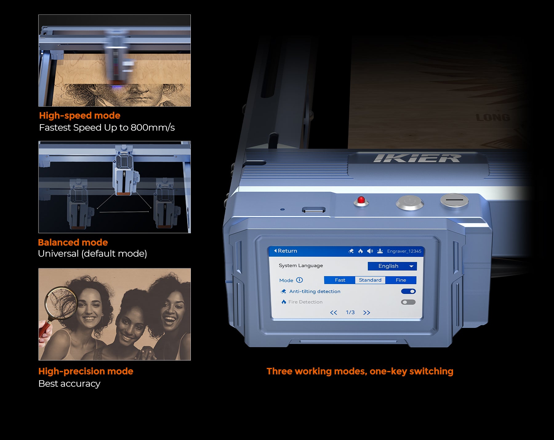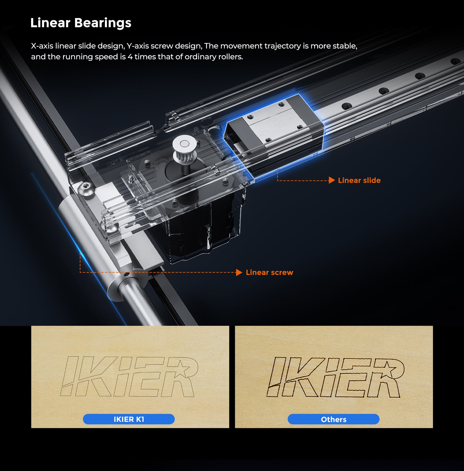 Engraving speed up to 800mm/s: The engraving speed of IKIER K1 can reach up to 800mm/s, which is 4 times faster than other machines in the industry. This speed has already reached the highest level in the current industry, maximizing your productivity to the fullest.
