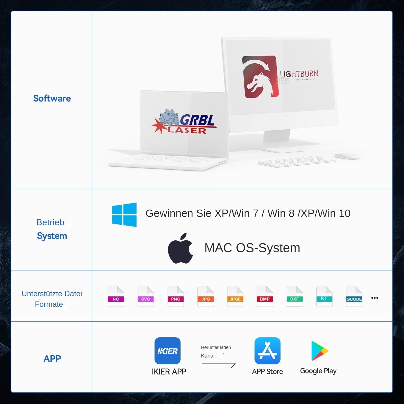 Unterstützte Dateiformate NC, BMP, JPG, PNG, DXF