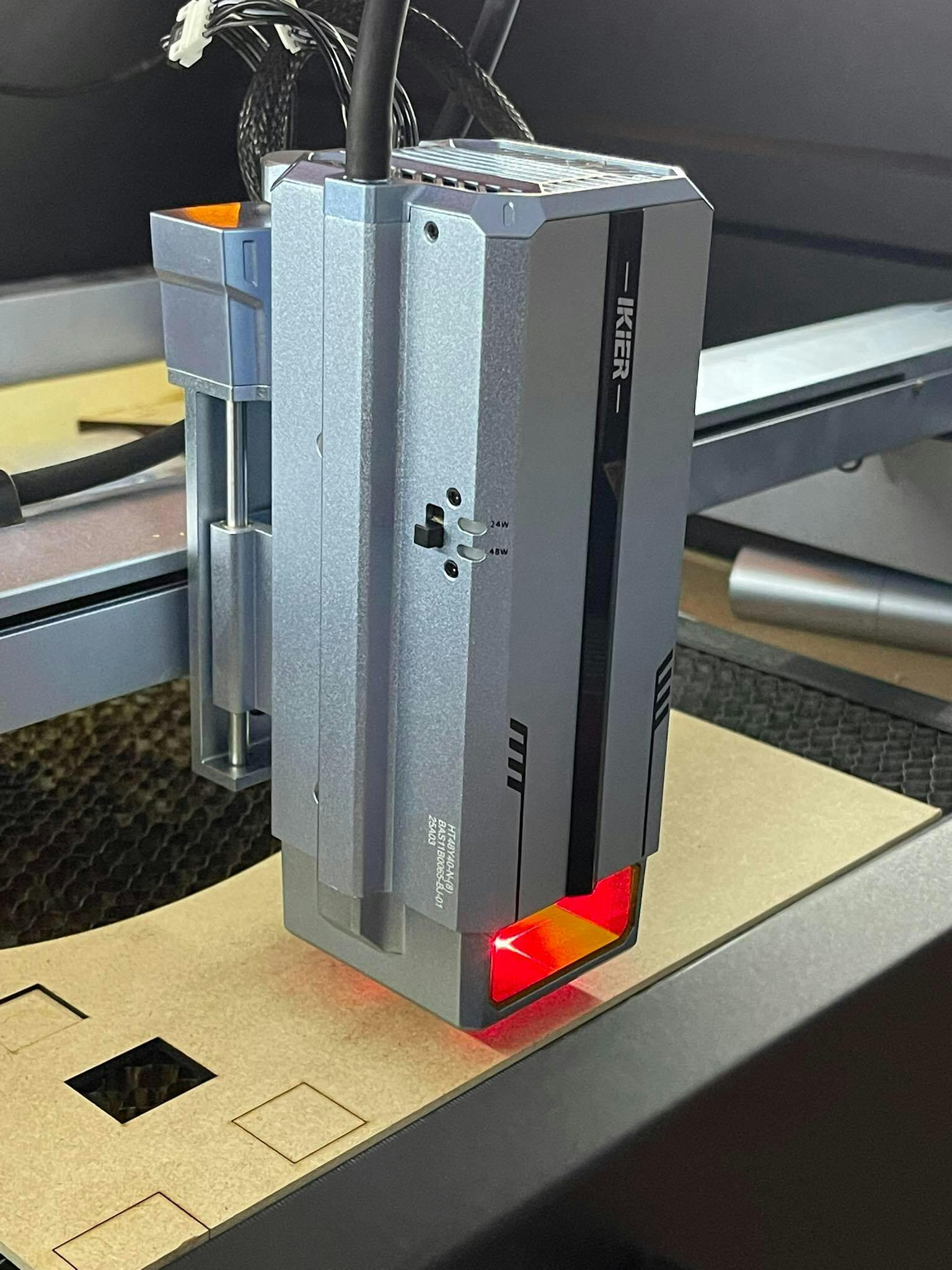 48W / 24W Diode Laser Power Switching: The World's First Gear Switching Laser Module. When you need to cut, you can use the 48W gear, and the laser power is fully turned on; when you need to engrave, you can use the 24W laser gear, and the engraving is more precise.