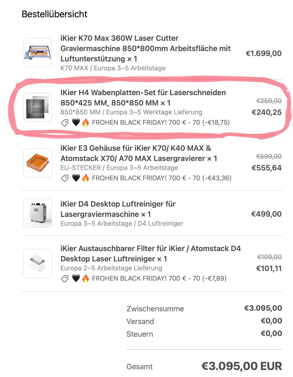 | Steuersoftware | LightBurn, LaserGRBL |